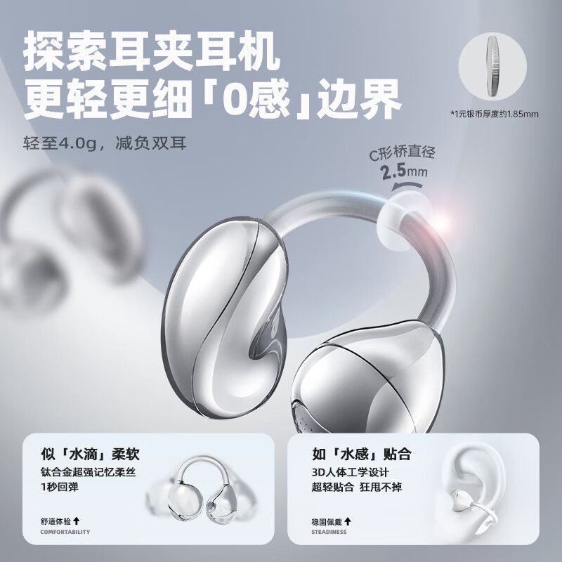 1、高保真立体声耳环 2、CD级无损音质 3、定向传音不漏音 4、AI通话降噪算法5、舒适零感佩戴6、38小时长效续航