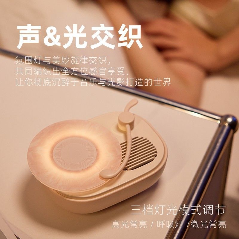 声光设计美学,氛围灯加持浪漫360°高保真旋律,音符开关,操作简单,持久续航,畅享无线音乐三档灯光模式调节,高光常亮/呼吸灯/微光常亮
