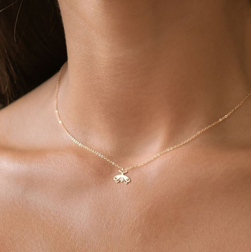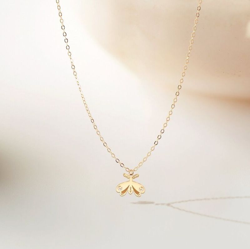 Fashion 18k gold plated small moth necklace cute gift for her handmade nickel free jewelry natural jewelry