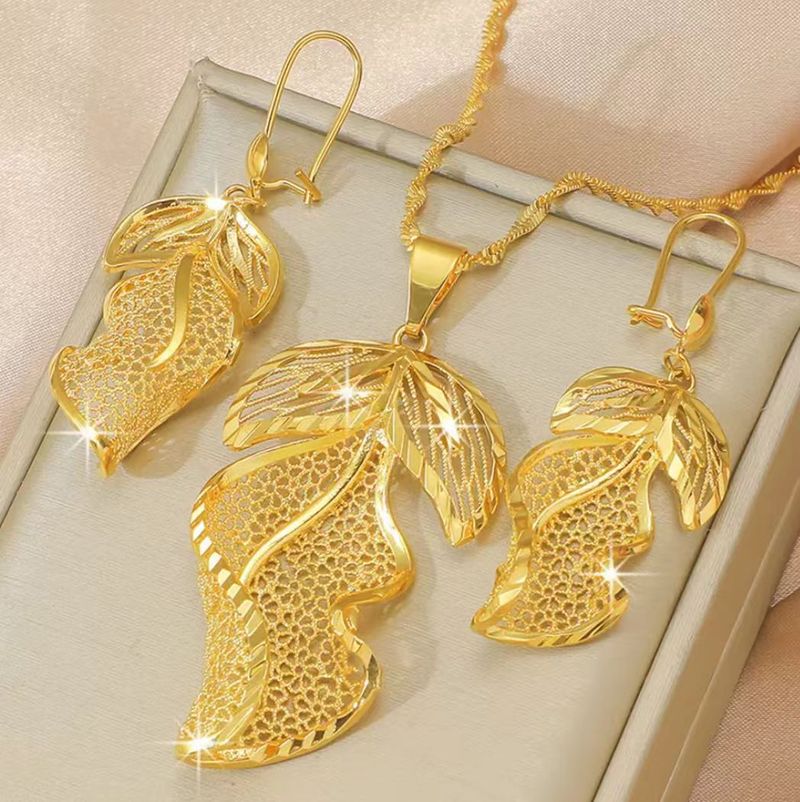 Trendy gold-plated stainless steel necklace and earrings set🌟🌟