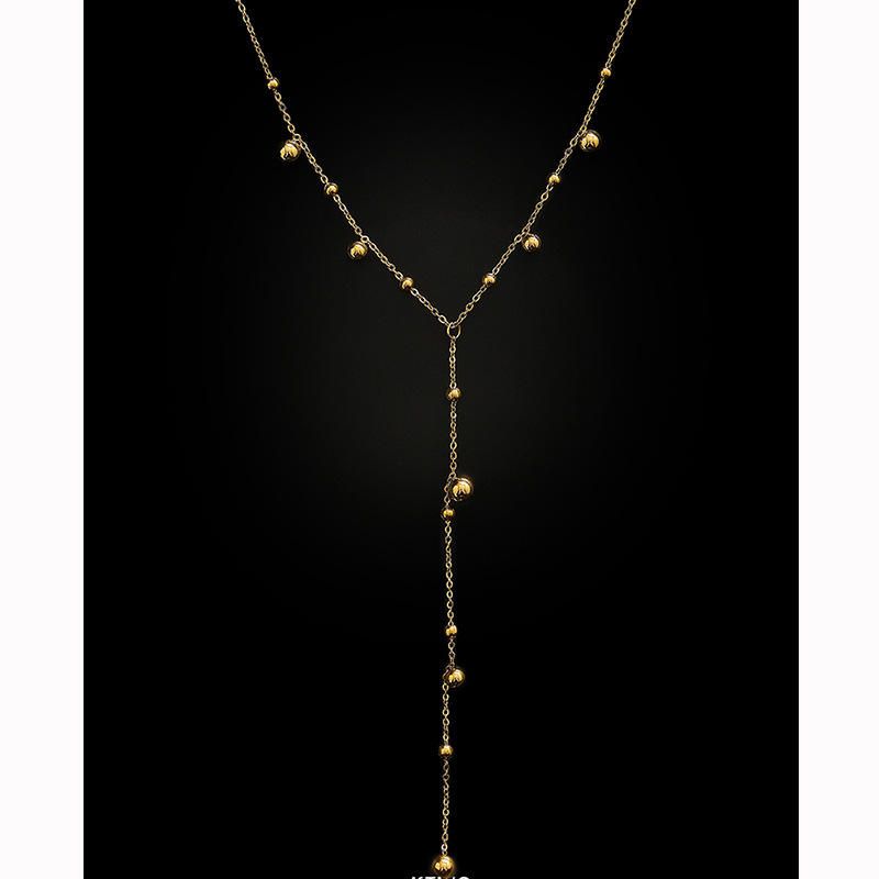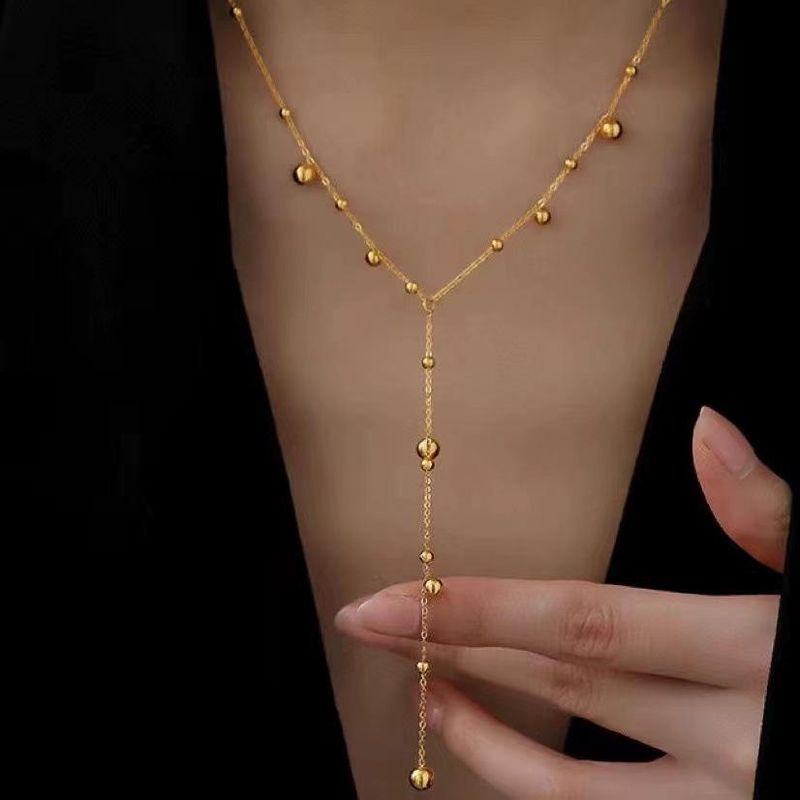 Ins style 18k gold stainless steel long tassel necklace women's fashion round beaded pendant necklace jewelry