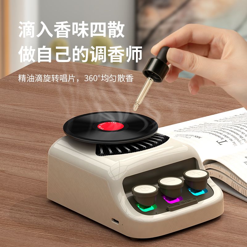 碟片香薰:碟片转动时香气满屋助眠:20首白噪音带您进入深睡按键解压:三个机械按键,灯光:11种炫彩灯光模式定制碟片:可上可加入自己风格元素* 主要功能:蓝牙响 tf卡 助眠 香薰(不配精油,可滴精油)