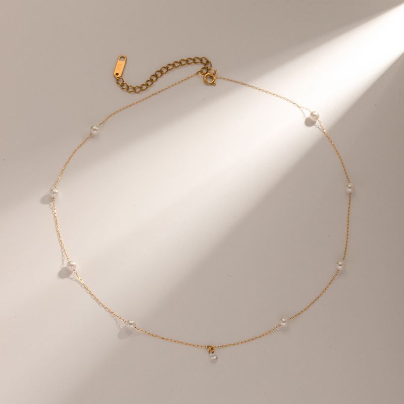 Simple stainless steel jewelry 18K PVD gold 5A high quality pearl crystal pendant necklace for women